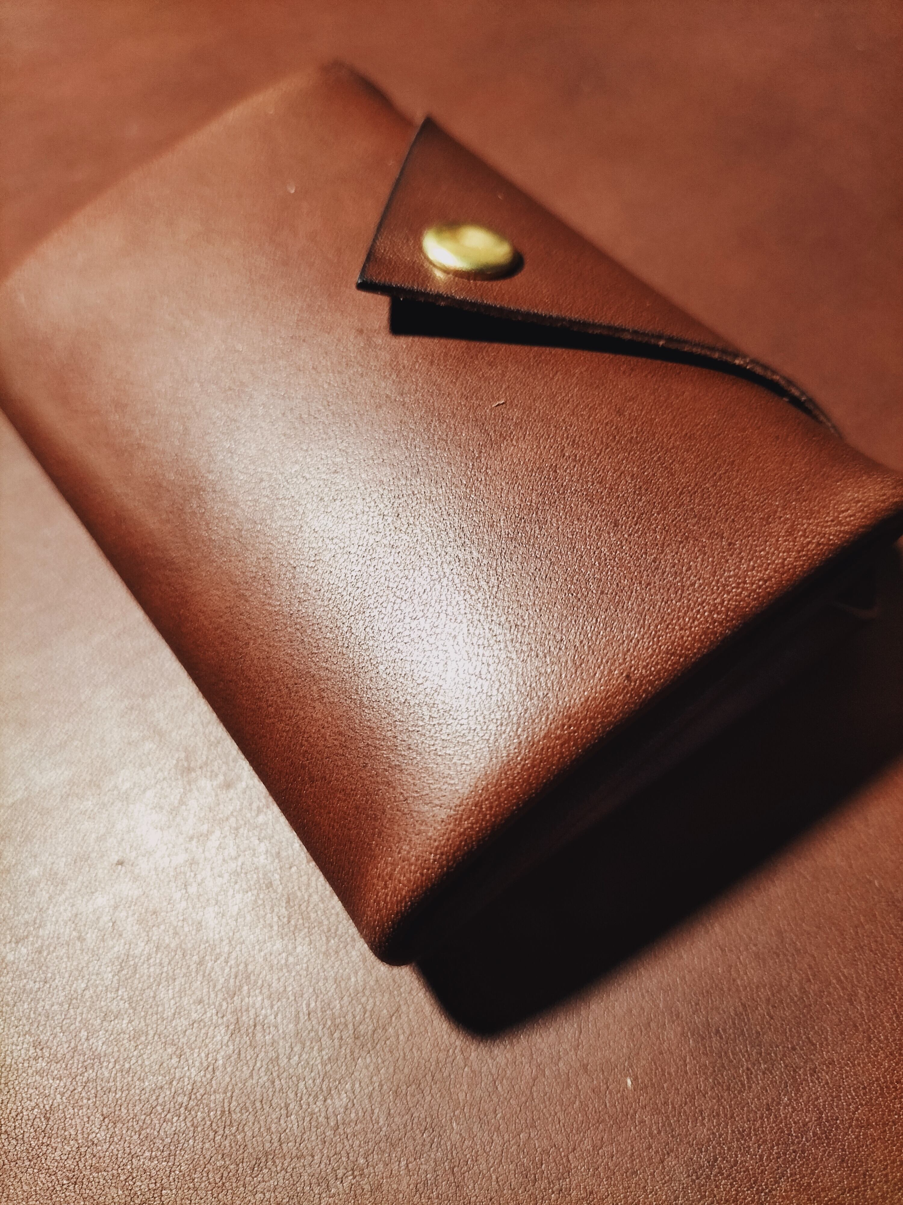 この財布には縫い糸は無いのでほつれる心配はありません。内布は付けずに裏側(床面)はツルツルになるまで磨き上げています。