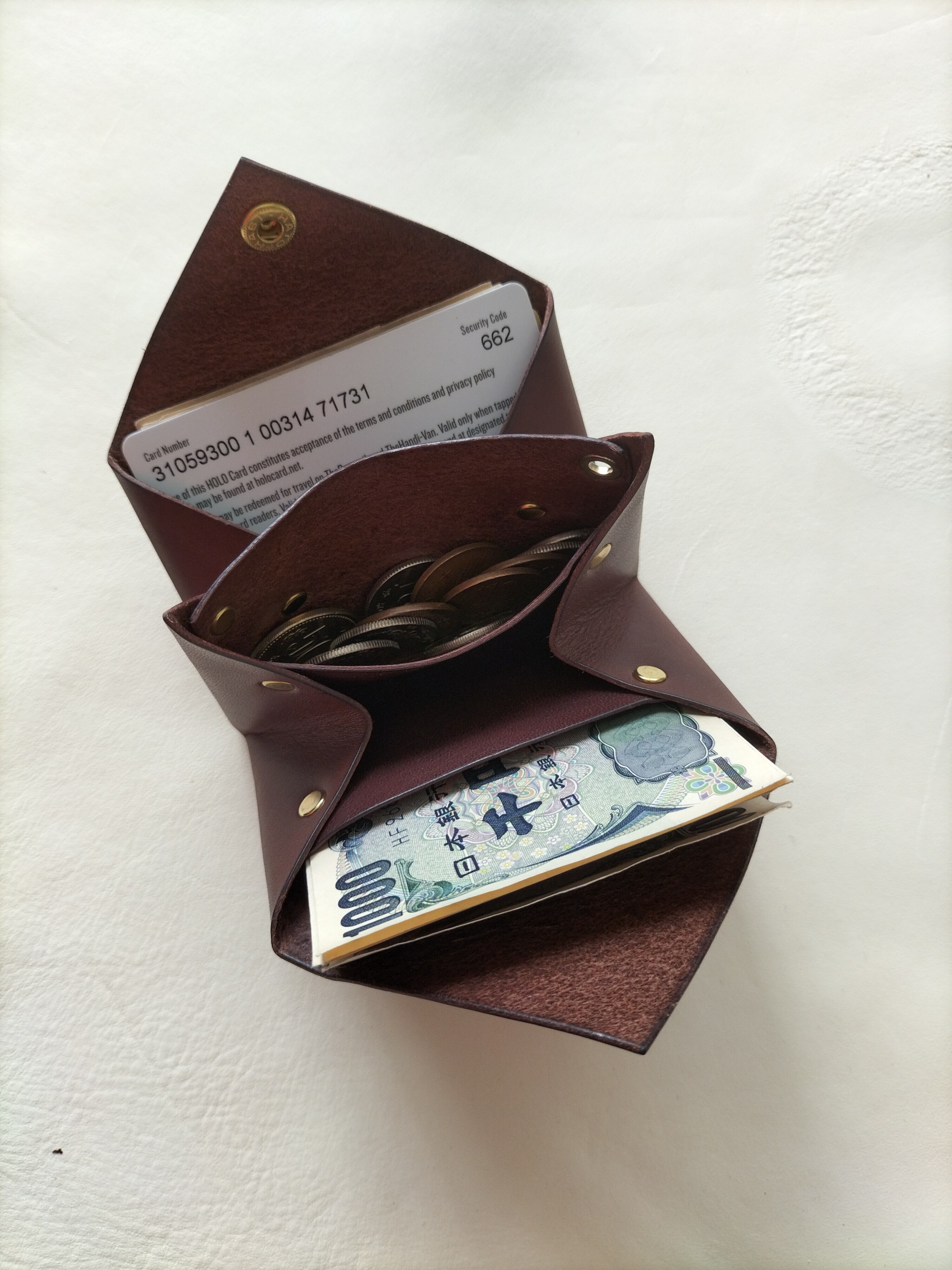 折り紙アートから生まれたミニウォレット。最小クラスのサイズながらも、お札を折らずに収納できる機能的なデザインが特徴です。